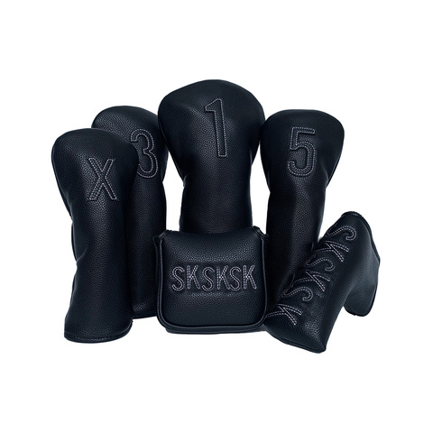 Özel nakış yama baskı PU deri Golf sopası başlığı Fairway hibrid ahşap atıcı başörtüsü siyah Golf eşarp Setr